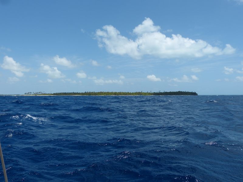 etwa 10 sm vor Cocos kam am Horizont das erste Fitzelchen Palme in Sicht und allmählich erschien immer mehr. Ein seltsamer Anblick nach 34 Tagen Wasser.